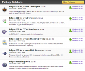 Under Package Solutions, choose Eclipse IDE for Java Developers, 151 MB.