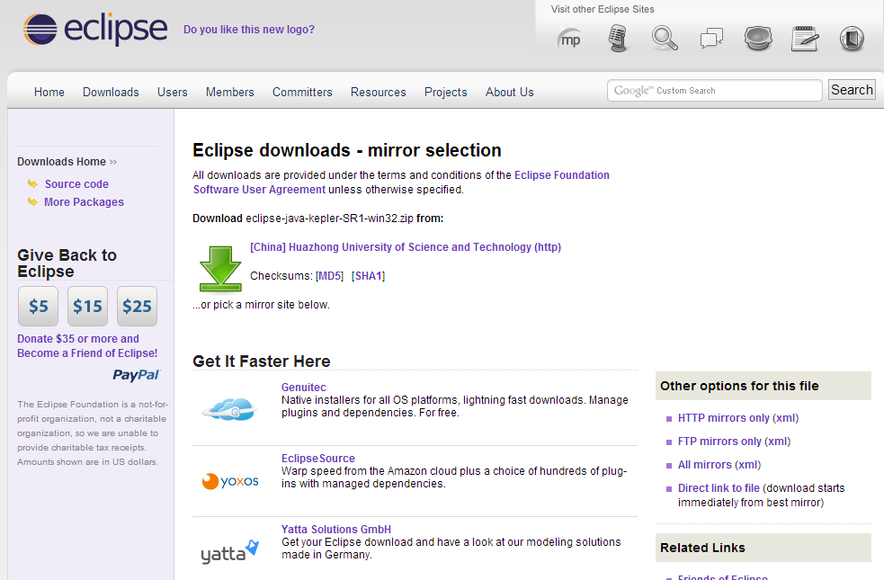 Hello everybody, today I will teach you how to install Eclipse, at the time of writing the latest version of Eclipse is Kepler. First we have to download Eclipse. Go to Eclipse site here: http://www.eclipse.org/downloads/